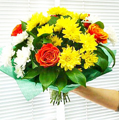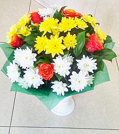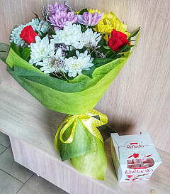 Яркий букет «Мы вместе» в любое время года передаст солнечное весеннее настроение. Розы олицетворяют хорошее, доброе отношение, а хризантемы – лучшие цветы, показывающие дружбу. Их яркие цвета повышают настроение, а композиция запахов придает заряд бодрости на целый день. Букет отлично подойдет для друзей, членов семьи или коллег. Необычный подарок не останется без внимания и о вас еще долго будут говорить в положительном ключе.